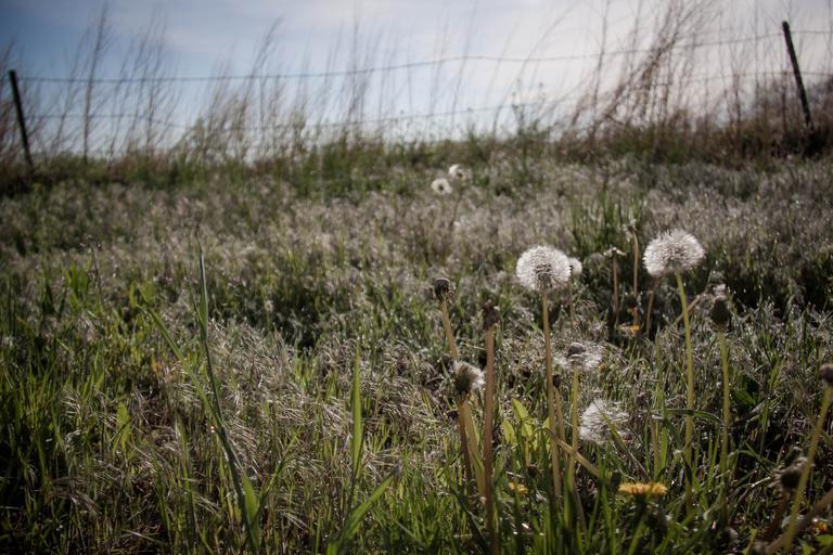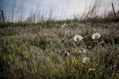 Keywords: dandelion field growth growing barbed wire nature summer spring grass plant season seeded dandelion environment grass background flora rural