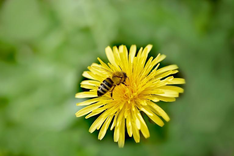Keywords: dandelion flower blossom bloom yellow bee insect close