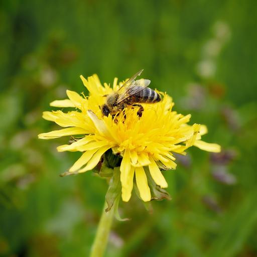 Keywords: dandelion flower blossom bloom yellow pointed flower bee insect close