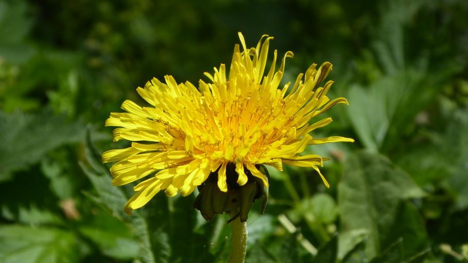 Keywords: dandelion green yellow blossom bloom pointed flower nature common dandelion bright