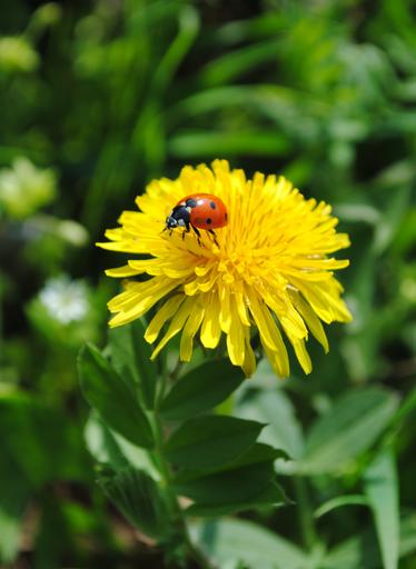 Keywords: dandelion yellow ladybug ladybird spring flower nature plants