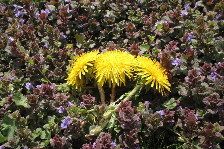 Keywords: dandelions yellow plants nature purple