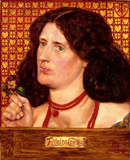 | Keywords: Dante Gabriel Rossetti - Regina Cordium (1861).jpg Artwork Creator Dante Gabriel Rossetti 1861-11 oil on panel in 10 75 8 50 Institution Private collection place of discovery object history Mr and Mrs John Aldam Heaton; by descent to their elder daughter Winifred Mrs Sydney Pawling ; Claude Heaton Pawling by 1929; then to the great-granddaughter of the sitter Mrs L D Jackson; Christie's June 5 1981 lot 41 ; Christie's March 26 1982 lot 86 ; Private Collection exhibition history B F A C 1883 no 48 ; Tate 1923 no 31 ; R A 1973 no 301 credit line in a heart on a tromple l'oeil plate on the ledge DGR / Woodbank / Nov 1861 artist's monogram/place/date lower right ~ Model Mrs Aldam Heaton accession number place of creation http //www rossettiarchive org/docs/s129 rap html Rossetti Archive http //www bmagic org uk/objects/1904P255 Study in Birmingham Museum and Art Gallery Custom license marker 2015 12 23 PD-old-auto-1923 1882 Uploaded with UploadWizard Paintings of females by Dante Gabriel Rossetti Females with necklaces in art Paintings with hearts Heart shaped pendants 1861 oil on canvas paintings 19th-century paintings in private collections |