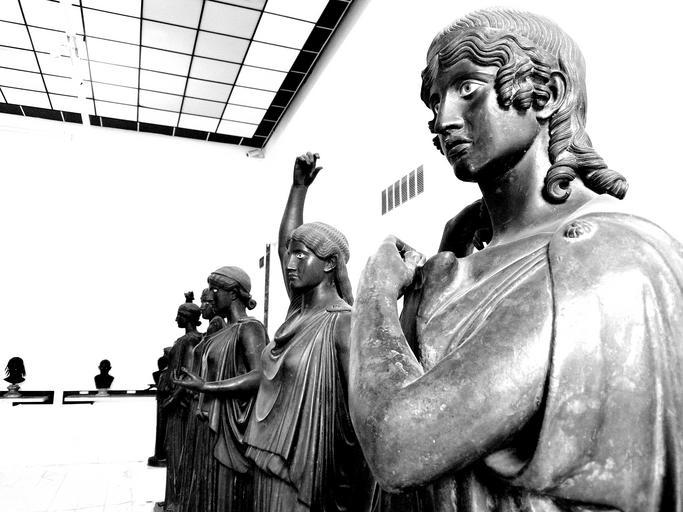 | Keywords: Danzatrici.JPG Museo Archeologico Nazionale di Napoli Statue muliebri in bronzo di epoca romana rinvenute ad Ercolano nella Villa dei Papiri Le cinque figure femminili più una sesta di dimensioni minori e in atteggiamento da orante benché trovate in punti diversi del giardino della villa probabilmente decoravano in origine il peristilio minore al centro del quale vi è una lunga piscina con sei nicchie al suo interno Le figure femminili sono state variamente interpretate dapprima come danzatrici poi come portatrici di acqua più recentemente come le Danaidi le sciagurate figlie di Danao condannate per i loro misfatti ad attingere acqua in eterno Oggi più correttamente si indicano semplicemente come peplophorai Autore della foto Roberto De Martino Own Dr Conati <gallery> File Napoli Museo Nazionale 0803 JPG File Danzatrici JPG Image Danzatrice JPG </gallery> Bronze peplophorai from the Villa of the Papyri Herculaneum 5604 5605 5619 5620 5621 |