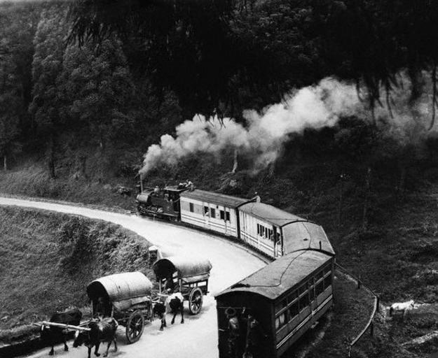| Keywords: Darjeeling Hill Train.jpg en A steam driven passenger train negotiates a bend on a narrow track which descends towards Darjeeling India Two brake men ride at the rear of the end carriage ru Пассажи ский поезд под па овозом в Индии п оходит к утой пово от на узкоколейной железной до оге в Да джилинге Индия Двое то мозных кондукто ов осуществляют п оезд на заднем то це хвостового вагона s 1930 http //www oldindianphotos in/2009/01/darjeeling-hill-train-1930s html author Custom license marker 2012 10 21 PD-old PD-India Uploaded with UploadWizard Train surfing in India History of train surfing Passenger railcar surfing Narrow gauge train surfing Back riding trains Between wagons riding trains |