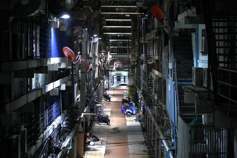 Keywords: dark back alley night street urban dangerous passage scary alleyway empty lonely city scene