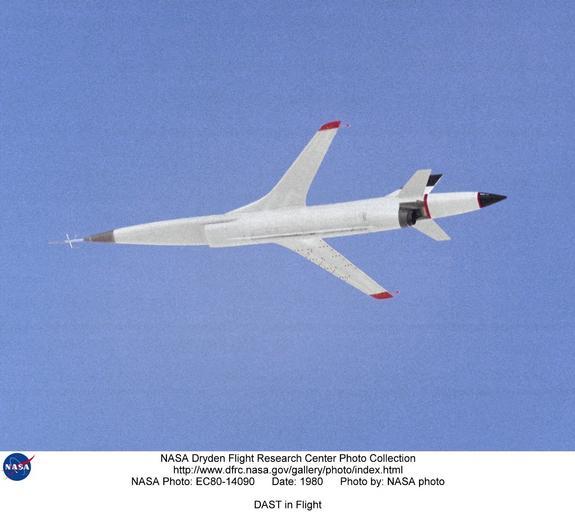 | Keywords: DAST in Flight DVIDS738232.jpg en The modified BQM-34 Firebee II drone with Aeroelastic Research Wing ARW-1 a supercritical airfoil during a 1980 research flight The remotely-piloted vehicle which was air launched from NASA's NB-52B mothership participated in the Drones for Aerodynamic and Structural Testing DAST program which ran from 1977 to 1983 The DAST 1 aircraft Serial 72-1557 pictured crashed on 12 June 1980 after its right wing ripped off during a test flight near Cuddeback Dry Lake California The crash occurred on the modified drone's third free flight These are the image contact sheets for each image resolution of the NASA Dryden Drones for Aerodynamic and Structural Testing DAST Photo Gallery From 1977 to 1983 the Dryden Flight Research Center Edwards California under two different names conducted the DAST Program as a high-risk flight experiment using a ground-controlled pilotless aircraft Described by NASA engineers as a wind tunnel in the sky the DAST was a specially modified Teledyne-Ryan BQM-34E/F Firebee II supersonic target drone that was flown to validate theoretical predictions under actual flight conditions in a joint project with the Langley Research Center Hampton Virginia The DAST Program merged advances in electronic remote control systems with advances in airplane design Drones remotely controlled missile-like vehicles initially developed to serve as gunnery targets had been deployed successfully during the Vietnamese conflict as reconnaissance aircraft After the war the energy crisis of the 1970s led NASA to seek new ways to cut fuel use and improve airplane efficiency The DAST Program's drones provided an economical fuel-conscious method for conducting in-flight experiments from a remote ground site DAST explored the technology required to build wing structures with less than normal stiffness This was done because stiffness requires structural weight but ensures freedom from flutter-an uncontrolled divergent oscillation of the structure driven by aerodynamic forces and resulting in structural failure The program used refined theoretical tools to predict at what speed flutter would occur It then designed a high-response control system to counteract the motion and permit a much lighter wing structure The wing had in effect electronic stiffness Flight research with this concept was extremely hazardous because an error in either the flutter prediction or control system implementation would result in wing structural failure and the loss of the vehicle Because of this flight demonstration of a sub-scale vehicle made sense from the standpoint of both safety and cost The program anticipated structural failure during the course of the flight research The Firebee II was a supersonic drone selected as the DAST testbed because its wing could be easily replaced it used only tail-mounted control surfaces and it was available as surplus from the U S Air Force It was capable of 5-g turns that is turns producing acceleration equal to 5 times that of gravity Langley outfitted a drone with an aeroelastic supercritical research wing suitable for a Mach 0 98 cruise transport with a predicted flutter speed of Mach 0 95 at an altitude of 25 000 feet Dryden and Langley in conjunction with Boeing designed and fabricated a digital flutter suppression system FSS Dryden developed an RPRV remotely piloted research vehicle flight control system; integrated the wing FSS and vehicle systems; and conducted the flight program In addition to a digital flight control system and aeroelastic wings each DAST drone had research equipment mounted in its nose and a mid-air retrieval system in its tail The drones were originally launched from the NASA B-52 bomber and later from a DC-130 The DAST vehicle's flight was monitored from the sky by an F-104 chase plane When the DAST's mission ended it deployed a parachute and then a specially equipped Air Force helicopter recovered the drone in mid-air On the ground a pilot controlled the DAST vehicle from a remote cockpit while researchers in another room monitored flight data transmitted via telemetry They made decisions on the conduct of the flight while the DAST was in the air In case of failure in any of the ground systems the DAST vehicle could also be flown to a recovery site using a backup control system in the F-104 The DAST Program experienced numerous problems Only eighteen flights were achieved eight of them captive in which the aircraft flew only while still attached to the launch aircraft Four of the flights were aborted and two resulted in crashes--one on June 12 1980 and the second on June 1 1983 Meanwhile flight experiments with higher profiles better funded remotely piloted research vehicles took priority over DAST missions After the 1983 crash which was caused by a malfunction that disconnected the landing parachute from the drone the program was disbanded Because DAST drones were considered expendable certain losses were anticipated Managers and researchers involved in other high-risk flight projects gained insights from the DAST program that could be applied to their own flight research programs The DAST aircraft had a wingspan of 14 feet four inches and a nose-to-tail length of 28 feet 4 inches The fuselage had a radius of about 2 07 feet The aircraft's maximum loaded weight was about 2 200 pounds It derived its power from a Continental YJ69-T-406 engine NASA Identifier NIX-EC80-14090 2009-09-23 Glenn Research Center https //www dvidshub net/image/738232 738232 2012-10-17 23 49 WASHINGTON DC US PD-USGov Langley Research Center Images from DoD uploaded by Fæ |