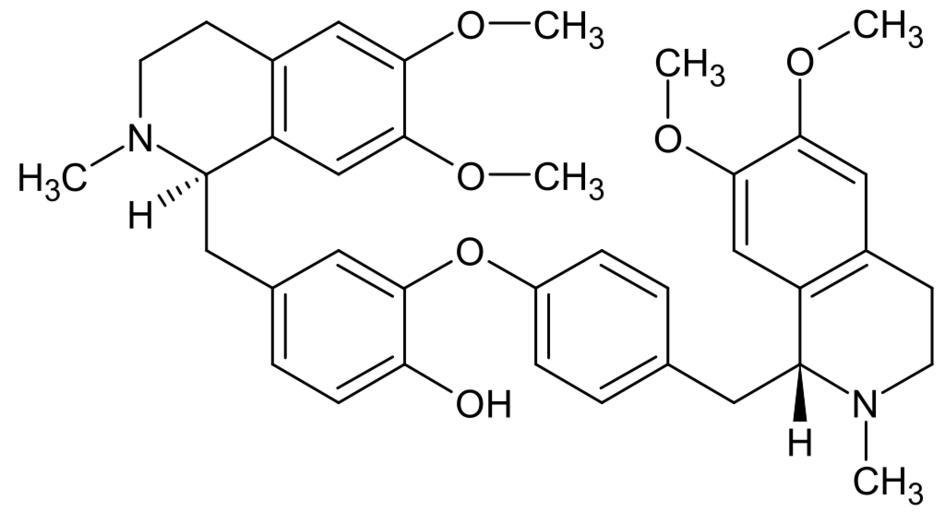 Keywords: Dauricine.svg Dauricine alkaloid structural formula Own Ring0 2009-09-19 thumb left Calcium channel blockers Dimethoxybenzenes Isoquinoline alkaloids Phenol ethers Tertiary alcohols