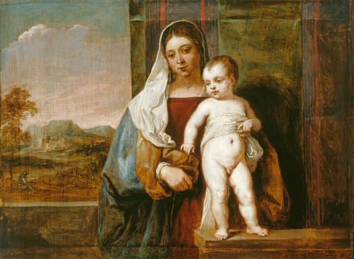 | Keywords: David Teniers the Younger - The Virgin and Child RCIN 400932.jpg Artwork Q27924999 creator David Teniers II after 1656 oil panel cm 17 23 3 Royal Collection of the United Kingdom object history credit line copy by Teniers of an Italian painting by Titian in the Archduke's collection; Acquired by Frederick Prince of Wales by 1750 accession number https //www royalcollection org uk/collection/search /15/collection/400932/the-virgin-and-child <gallery>File Tiziano Vecellio called Titian - Gipsy Madonna - Google Art Project jpg Original File Tizian 046 jpg</gallery> PD-old-100 Modelli for the Theatrum pictorium in the Royal Collection 1650 Baroque paintings in the Royal Collection of the United Kingdom Paintings after Titian The Virgin and Child Gipsy Madonna Titian |