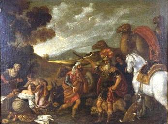 | Keywords: David y Absalón, de un discípulo de Pedro de Orrente (Museo Cerralbo, Madrid).jpg La obra representa al rey David junto a su hijo Absalón que se rebeló contra él y acabó siendo asesinado lo que provocó una gran aflicción a su padre Primera mitad del siglo XVII oil on canvas Size cm 66 44 Institution Museo Cerralbo http //ceres mcu es/pages/Main accession number 01970 http //ceres mcu es/pages/Main PD-old-100 Paintings of David in Spain 17th-century paintings of David Absalom 17th-century paintings in the Museo Cerralbo |
