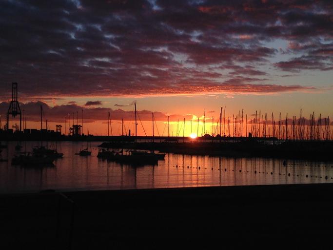 Keywords: dawn port boats orange sun canary islands spring