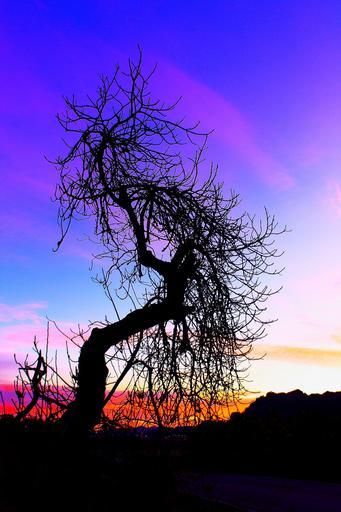 Keywords: dawn shadow blue black dark sky tree branch trunk