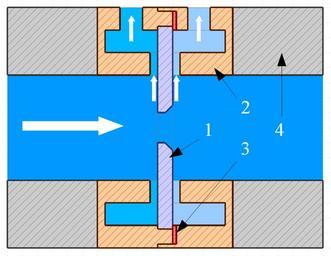Keywords: DCS (Automatics, Metrology).png de Durchflussblende zur Bestimmung von Durchflussmengen über den durch Stauung entstehenden Differenzdruck Blende Ringflansch Dichtungsring Rohr en diaphragm cell standard for flow rate measuring Описание Диаф агма каме ная станда тная для изме ения асхода Схема установленной диаф агмы в кольцевой каме е кото ая в свою оче едь вставлена в т убу <br> П инятые обозначения Диаф агма Кольцевая каме а П окладка Т уба<br> Ст елки показывают нап авление жидкости/газа Оттенками цвета выделено изменение давления own work by uploader Frigolem frigolem gmail com I public this image for public domain public domain licence Orifice plates