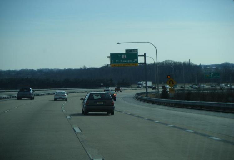 Keywords: DE 1 SB at exit 148 US 13.JPG Southbound Delaware Route 1 at exit for U S Route 13 exit 148 at south end of Chesapeake and Delaware Canal Bridge in St Georges Delaware Own 2008-02-02 Dough4872 Delaware Route 1