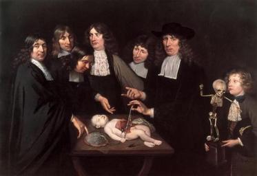 | Keywords: De anatomische les van Dr. Frederick Ruysch.jpg Artwork creator Jan van Neck Anatomische les van Dr Frederick Ruysch Alternate titles Anatomische les van Prof Frederick Ruysch <small><ref>http //www rkd nl/rkddb/dispatcher aspx action search database ChoiceImages search priref 12295 RKDimages Kunstwerknummer 12295 </ref></small> <br /> Anatomische les van Dr Frederik Ruysch <small><ref>http //www rkd nl/rkddb/dispatcher aspx action search database ChoiceImages search priref 172014 RKDimages Kunstwerknummer 172014 </ref></small> 1683 oil canvas cm 141 203 Amsterdam Museum Amsterdam bottom right J V Neck / Contrarolleur / f 1683 object history by 1690 Chirurgijnsgilde Theatrum Anatomicum Kleine Vleeshal Nes Amsterdam ProvenanceEvent 1690 transfer Theatrum Anatomicum Waag Nieuwmarkt Amsterdam ProvenanceEvent 1798 conveyance Commissie van Geneeskundig Toevoorzicht by 1862 ˜de kamer van Hovius ™ Waag Nieuwmarkt Amsterdam ProvenanceEvent 1862 purchase Schouten ProvenanceEvent 1864-06 purchase Commissie van Kunstliefhebbers kunstenaars en geneeskundigen ProvenanceEvent 1864 gift LangSwitch die Stadt the city of de Stad Amsterdam Commissie van Kunstliefhebbers kunstenaars en geneeskundigen ProvenanceEvent 1864-1878 Athenaeum Illustre Amsterdam ProvenanceEvent 1876-1878 Koninklijk Oudheidkundig Genootschap ProvenanceEvent 1878-1885 Academie van Beeldende Kunsten Oudemanhuispoort Amsterdam ProvenanceEvent 1885 loan Rijksmuseum Amsterdam loan Amsterdams Historisch Museum source SA 2644 Other versions PD-old-100 LangSwitch References Noten <references /> Frederik Ruysch Medicine in art Jan van Neck Portraits in the Amsterdam Museum 1683 paintings Dutch Golden Age portraits of guilds Group portraits with 7 persons Paintings of autopsies Paintings of babies 1680s paintings in the Netherlands People with tools in art Paintings with signatures lower right Skeletons in art Paintings with years of production artist Nieuwmarkt |