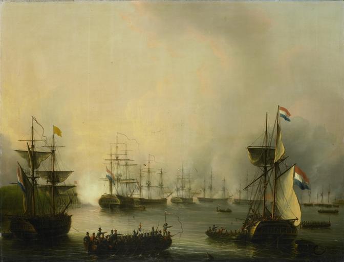 Keywords: De beschieting van Palembang, Sumatra, 24 juni 1821 Rijksmuseum SK-A-1134.jpeg accession number SK-A-1134 Martinus Schouman credit line nl De beschieting van Palembang op Sumatra op 24 juni 1821 door de Nederlandse vloot De Nederlandse oorlogsschepen liggen voor de kust van Sumatra tussen de schepen varen enkele sloepen drager Height cm 70 5 drager Width cm 93 exhibition history Institution Rijksmuseum Technique oil canvas object history Acquisition 1885-05-01 object type Potential derivatives exist check http //commons wikimedia org/w/index php search Rijksmuseum+SK-A-1134 this search PD-US PD-old Data and photography rights All data and all images made available through the API are either in the public domain or are subject to a CC0 license https //www rijksmuseum nl/en/api/terms-and-conditions-of-use cc-zero place of creation http //www rijksmuseum nl/collectie/SK-A-1134 De beschieting van Palembang Sumatra 24 juni 1821 Q17323810 Uploaded with GWToolset De beschieting van Palembang Sumatra 24 juni 1821 Rijksmuseum SK-A-1134 http //www rijksmuseum nl/media/assets/SK-A-1134 Images uploaded by Fæ Images from the Rijksmuseum Paintings by Martinus Schouman in the Rijksmuseum Amsterdam Martinus Schouman |