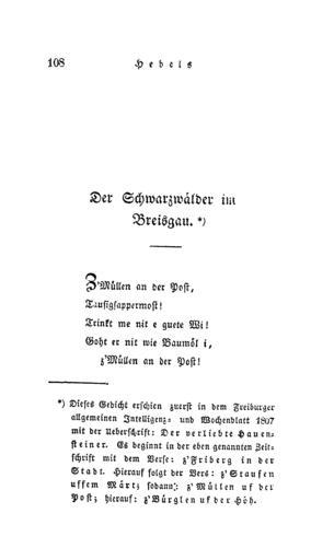 Keywords: DE Hebel Werke 1834 2 108.png 2 Allemannische und hochdeutsche Gedichte 1834 107 109
