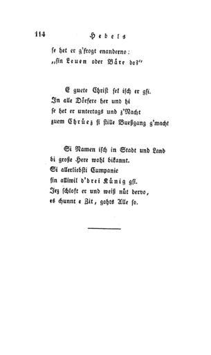 Keywords: DE Hebel Werke 1834 2 114.png 2 Allemannische und hochdeutsche Gedichte 1834 113 115
