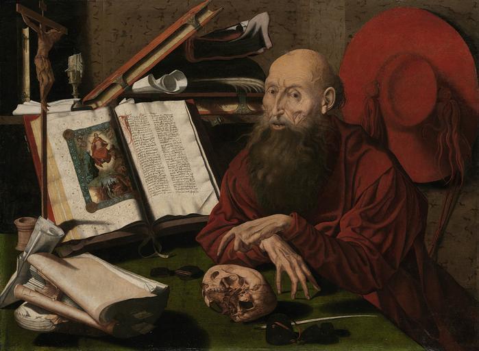 | Keywords: De heilige Hieronymus in zijn studeervertrek Rijksmuseum SK-A-3123.jpeg accession number SK-A-3123 anonymous Marinus van Reymerswale born ca died 1557 Marinus van Reymerswale born ca died 1557 credit line nl De heilige Hieronymus in zijn studeervertrek wijzend met zijn linkerhand naar een schedel Op zijn werktafel liggen verder een openstaande boek waarin een miniatuur van het Laatste Oordeel boeken en paperassen een bril of loep in een houder pen en inkt een kruisbeeld en een kaars Aan de muur hangt zijn kardinaalshoed Herhaling naar het origineel uit 1541 in het Prado te Madrid drager Height cm 80 5 drager Width cm 109 exhibition history 2010-2010 Op weg naar het Zuiden Maastricht 2008-2009 Erasmus en de kunst van zijn tijd Rotterdam Institution Rijksmuseum Technique oil panel object history Acquisition 1931-08-01 object type Potential derivatives exist check http //commons wikimedia org/w/index php search Rijksmuseum+SK-A-3123 this search PD-US PD-old Data and photography rights All data and all images made available through the API are either in the public domain or are subject to a CC0 license https //www rijksmuseum nl/en/api/terms-and-conditions-of-use cc-zero place of creation A Milkers Proefschrift Omtrent Marinus van Reymerswaele Gent 1985 p 177 178H H van Regteren Altena H J Zantkuyl Berichten van de Rijksdienst voor het Oudheidkundig Bodemonderzoek in Nederland ROB 19 1969 p 257 pl XXXVIIL van Puyvelde Revue belge d'Architecture and d'Histoire de l'Art 29 1960 p 83 fig 11M J Friedländer Der Hl Hieronymus von Marinus van Reymerswale Pantheon 13 1934 p 33Jaarverslag Rijksmuseum Amsterdam 1931 p 10 11 http //www rijksmuseum nl/collectie/SK-A-3123 De heilige Hieronymus in zijn studeervertrek Q17331738 Uploaded with GWToolset De heilige Hieronymus in zijn studeervertrek Rijksmuseum SK-A-3123 http //www rijksmuseum nl/media/assets/SK-A-3123 Images uploaded by Fæ Images from the Rijksmuseum Dutch Renaissance paintings in the Rijksmuseum Amsterdam Flemish Renaissance paintings in the Rijksmuseum Amsterdam Marinus van Reymerswale |