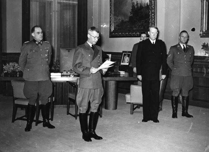 Keywords: statsakten vidkun quisling vidkunquisling krigen andre verdenskrig andreverdenskrig world war ii worldwarii second world war secondworldwar okkupasjonstiden josef terboven josefterboven blackandwhite monochrome indoor black and white T. v. Wilhelm Rediess, Josef Terboven, Vidkun Quisling. 1942/02/01. RA/PA-1209/Ue 94/ img048 T. v. Wilhelm Rediess, Josef Terboven, Vidkun Quisling. 1942/02/01. RA/PA-1209/Ue 94/ img048 |