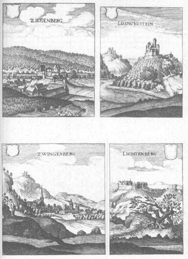 Keywords: De Merian Hassiae 227.jpg 226 228 Ober-Mörlen Burg Ludwigstein Zwingenberg Bergstraße