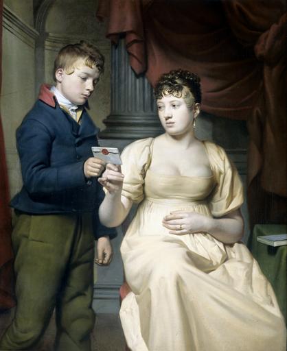 | Keywords: De minnebrief Rijksmuseum SK-A-1064.jpeg  accession number SK-A-1064 nl De minnebrief Een jonge bediende overhandigt een verzegelde brief aan een zittend jonge vrouw Rechts een tafel waarop een boek ligt Op de achtergrond een zuil en gordijn ; Willem Bartel van der Kooi 1768-1836 olieverf op doek 1808 Height cm 131 Width cm 108 exhibition history 2005-2006 Meesters van de Romantiek Nederlandse kunstenaars 1800-1850 Rotterdam 2000-2005 Langdurig bruikleen Fries Museum Leeuwarden Institution Rijksmuseum Technique oil canvas object history Acquisition 1869 object type Potential derivatives exist check http //commons wikimedia org/w/index php search Rijksmuseum+SK-A-1064 this search PD-US PD-old-100 Data and photography rights All data and all images made available through the API are either in the public domain or are subject to a CC0 license https //www rijksmuseum nl/en/api/terms-and-conditions-of-use cc-zero place of creation E Bergvelt 'Lodewijk Napoleon de levende meesters en het Koninklijk Museum 1806-1810 ' Kunsthistorisch Jaarboek 56/57 2005/2006 p 275 afb 11 E Bergvelt 'Nationale levende en 19e-eeuwse meesters Rijksmusea en eigentijdse kunst 1800-1848 Nederlands Kunsthistorische Jaarboek 35 1984 p 88 afb 7 A M E L Hoogenboom 'Het Musée Imaginaire van de negentiende eeuw VIII Willem Bartel van der Kooi De Minnebrief' De Negentiende Eeuw 16 1992 p 86-87 http //www rijksmuseum nl/collectie/SK-A-1064 De minnebrief Q17323733 Uploaded with GWToolset De minnebrief Rijksmuseum SK-A-1064 http //www rijksmuseum nl/media/assets/SK-A-1064 Images uploaded by Fæ Images from the Rijksmuseum Paintings by Willem Bartel van der Kooi in the Rijksmuseum Amsterdam Willem Bartel van der Kooi |