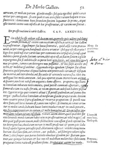 | Keywords: De Morbo Gallico.jpg en A page from De Morbo Gallico The French Disease describing the earliest documented use of condoms The Humble Little Condom A History by Aine Collier 2007 p 51 Gabriello Fallopio 1564 PD-old-100 PD-old-100 Contraception Books about syphilis Gabriele Falloppio |