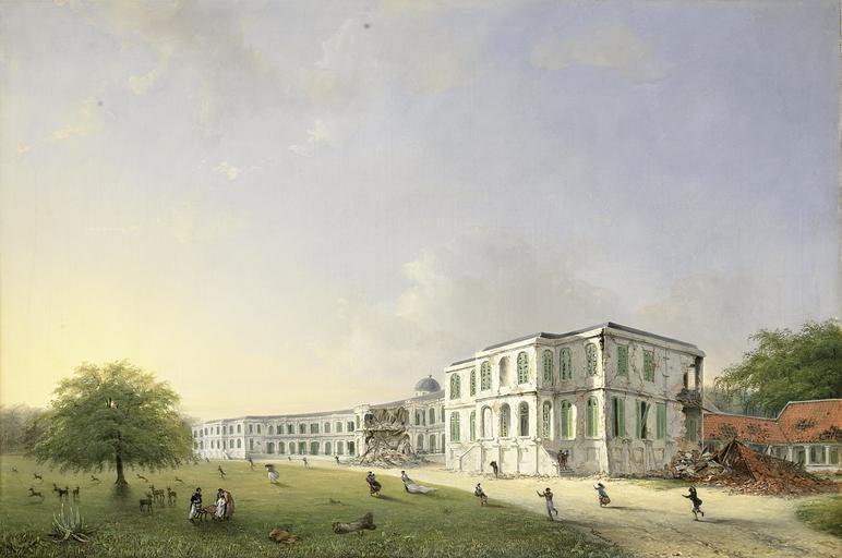 | Keywords: De voorzijde van het paleis te Buitenzorg na de aardbeving van 10 oktober 1834 Rijksmuseum SK-A-4025.jpeg accession number SK-A-4025 Willem Troost II credit line nl Gezicht op de voorzijde van het zwaar beschadigde buitenverblijf te Buitenzorg na de aardbeving van 10 oktober 1834 Inlanders hollen verschrikt over het grasveld links een groep vluchtende herten Op de voorgrond wordt mevrouw Baud-Van Braam verzorgd Pendant van SK-A-4024 drager Height cm 52 drager Width cm 77 exhibition history Institution Rijksmuseum Technique oil canvas object history Acquisition 1960 object type Potential derivatives exist check http //commons wikimedia org/w/index php search Rijksmuseum+SK-A-4025 this search PD-US PD-old Data and photography rights All data and all images made available through the API are either in the public domain or are subject to a CC0 license https //www rijksmuseum nl/en/api/terms-and-conditions-of-use cc-zero place of creation http //www rijksmuseum nl/collectie/SK-A-4025 De voorzijde van het paleis te Buitenzorg na de aardbeving van 10 oktober 1834 Q17335917 Uploaded with GWToolset De voorzijde van het paleis te Buitenzorg na de aardbeving van 10 oktober 1834 Rijksmuseum SK-A-4025 http //www rijksmuseum nl/media/assets/SK-A-4025 Images uploaded by Fæ Images from the Rijksmuseum Paintings in the Rijksmuseum Amsterdam |