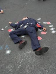 Keywords: Dead advertising for a play.JPG Street performer during the Edinburgh Festival in 2006 Actors where lying on the floor of the Royal Mile imitating corpses with advertising for their play about JFK Performance de rue lors du Festival international d'Édimbourg 2006 Les comédiens étaient couchés sur le sol du Royal Mile imitant des cadavres avec des publicités pour leur pièce de théâtre sur JFK Own 2006-08-08 TwoWings User TwoWings/Note Street performers in the United Kingdom Edinburgh Festival Human billboards Death performances Photos by TwoWings PD-self Taken with HP PhotoSmart R707 John F Kennedy in art 2006 in Scotland |