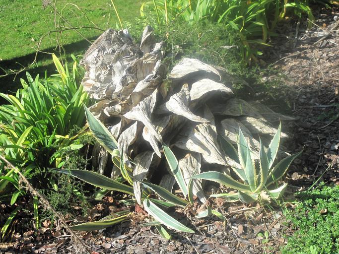 Keywords: Dead Agave.jpg en Agave americana dead after flowering but with suckers Roquebrune Cap-Martin Alpes-Maritimes France fr Agave americana mort après floraison mais faisant des rejets Roquebrune Cap-Martin Alpes-Maritimes own Tangopaso 2010-04-02 Agave americana 'Marginata Aurea' Dead plants Plants in Roquebrune-Cap-Martin |