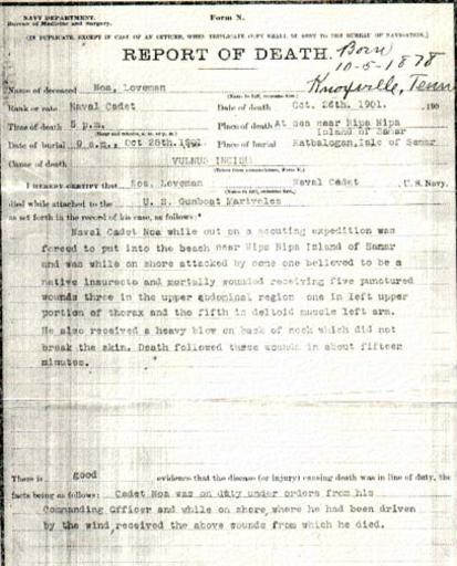 Keywords: Death certificate for Loveman Noa.jpg David Bernard Loveman Noa 1878-1901 death certificate Source Morehead archive US Navy PD-USGov Death certificates