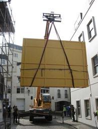 Keywords: Death of Major Peirson Jersey Museum 2012 4.jpg John Singleton Copley's painting The Death of Major Peirson arrived in Jersey for exhibition for the first time in 2012 on loan from the Tate It was hoisted into the Jersey Museum on 3 April 2012 A window and part of a wall had to be removed to enable access to the gallery for the crated painting own photo 2012-04-03 09 46 54 Man vyi The Death of Major Peirson 2012 in Saint Helier Jersey Exhibitions in 2012 Crates Lifting Jersey Museum and Art Gallery Scaffolding in Jersey |