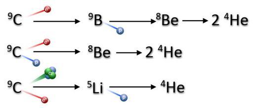 Keywords: Decadimento carbonio-9.jpg en Decay chains of carbon-9 it Catene di decadimento del carbonio-9 own KeyboardSpellbounder 2011-06-24 diagram Carbon Isotopes
