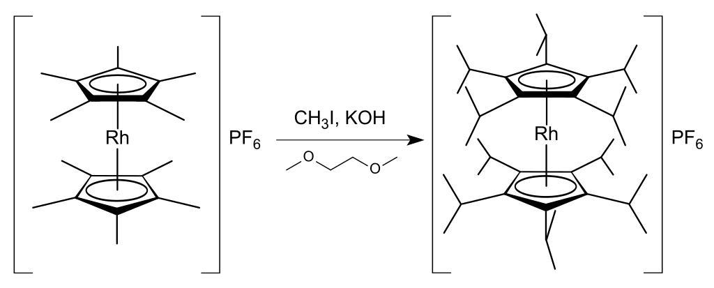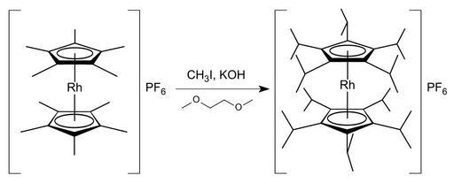 MAKE A MEME View Large Image Decaisopropylrhodicinium hexafluorophosphate synthesis.svg en One-pot synthesis of decaisopropylrhodicinium hexafluorophosphate from decamethylrhodicinium hexafluorophosphate by formation of twenty new carbon-carbon bonds own vectorised ...