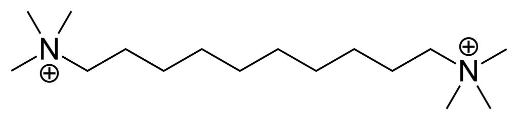 Keywords: Decamethonium.svg en 2D structure of muscle relaxant decamethonium Syncurine Own Harbin 2009-09-06 Neuromuscular blocking agents Nicotinic agonists Quaternary ammonium compounds