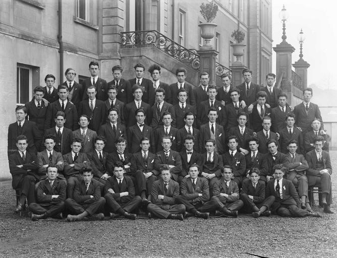 Keywords: mallow students de la salle college delasallecollege de la salle delasalle park road parkroad ireland munster men fáinne pioneer pins pioneerpins total abstinence totalabstinence suits ties december 1923 1920s twenties poole collection poolecollection glass negative glassnegative a.h. poole ahpoole arthur henri poole arthurhenripoole waterford national library of ireland nationallibraryofireland blackandwhite monochrome team sport outdoor sport black and white A group of students from Mallow pictured at De La Salle College, Waterford. Many of the young Corkmen are wearing the Fáinne rings and/or Pioneer badges on their lapels, showing that they speak Irish (enthusiastically) and abstain from alcohol. Date: 2 December 1923 NLI Ref.: P_WP_3140 A group of students from Mallow pictured at De La Salle College, Waterford. Many of the young Corkmen are wearing the Fáinne rings and/or Pioneer badges on their lapels, showing that they speak Irish (enthusiastically) and abstain from alcohol. Date: 2 December 1923 NLI Ref.: P_WP_3140 |