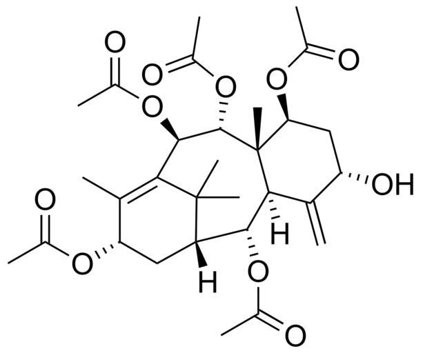 Keywords: Decinnamoyltaxinine J.svg Chemical structure of decinnamoyltaxinine J Own 13 36 17 June 2013 UTC Ed Edgar181 Taxanes Acetate esters