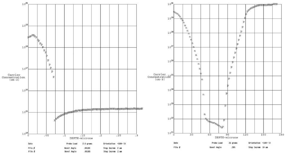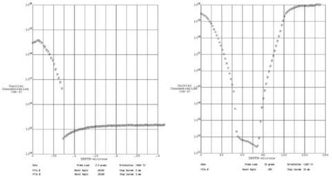 | Keywords: Deep and Shallow SR profiles portrait.jpg en The shallow profile on the left the deep profile on the right Carrier concentration is plotted against depth Regions with a net electron concentration are denoted as n or n-type Regions with a net hole concentration are denoted as p Own Rogerprocessengineer 12/14/08 Check categories 2009 February 14 en wikipedia Spreading_Resistance_Profiling Microtechnology 4 Semiconductors Manufacture of electronics Analysis Microtechnology | ||||