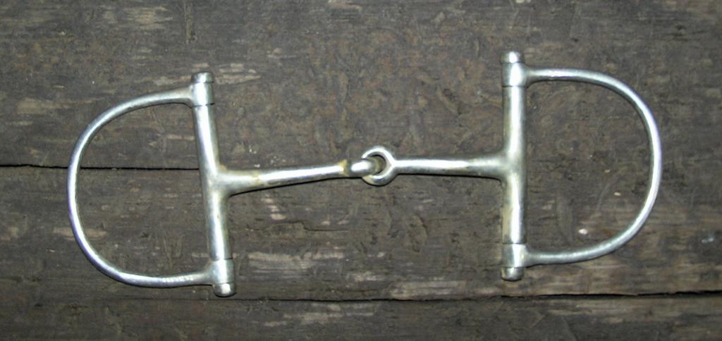 MAKE A MEME View Large Image DeeRing.jpg Dee Ring Snaffle Bit Own 2007-03-02 Montanabw public domain Single jointed mouthpiece Dee ring snaffle bits