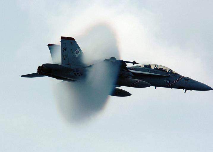 | Keywords: Defense.gov News Photo 050727-N-3488C-051.jpg en Water vapor builds up around a Navy F/A-18F Super Hornet as it breaks the sound barrier during a fly-by near the aircraft carrier USS Kitty Hawk CV 63 on July 27 2005 Kitty Hawk and embarked Carrier Air Wing 5 are currently conducting operations in the Philippine Sea The Hornet is attached to Strike Fighter Squadron 102 of Naval Air Facility Atsugi Japan Kitty Hawk is home ported in Yokosuka Japan 050727-N-3488C-051 Navy http //www defense gov/photos/newsphoto aspx newsphotoid 6892 2005-07-27 en Petty Officer 3rd Class Jonathan Chandler U S Navy PD-USGov-Military-Navy Defense gov news media for July 2005 Import by User Slick-o-bot/Defense gov News Photos Photos taken with Nikon D2H F/A-18F Super Hornet with condensation clouds from shockwaves |