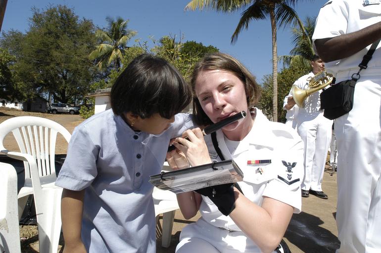 Keywords: Defense.gov News Photo 050216-N-7923C-247.jpg en Navy Musician Petty Officer 3rd Class Amanda Leslie plays the flute while a student from the Saint Francis Xavier School for Children with Special Needs in Goa India tries to get into the act on Feb 16 2005 Sailors from the amphibious command ship USS Blue Ridge LCC 19 and the embarked Seventh Fleet staff participated in the project by refurbishing part of the school's multi-purpose facility during the ship's routine port visit Leslie is assigned to the U S Seventh Fleet Band 050216-N-7923C-247 Navy http //www defense gov/photos/newsphoto aspx newsphotoid 6157 2005-02-16 en Chief Petty Officer Rick Chernitzer U S Navy PD-USGov-Military-Navy Defense gov news media for February 2005 India Files of India with bad file names Import by User Slick-o-bot/Defense gov News Photos Defense gov photos requiring renaming Taken with Nikon D100 USS Blue Ridge LCC-19 Bansuri |