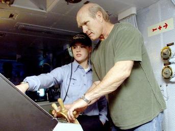 Keywords: Defense.gov News Photo 001214-N-0963E-014.jpg en Fox Sports celebrity Terry Bradshaw right tries his hand at steering the USS Harry S Truman CVN 75 under the watchful eye of Seaman Blair C Mammel on Dec 14 2000 Mammel who is a qualified ship's helmsman gave Bradshaw some pointers on steering the aircraft carrier which is nearly four football fields long Bradshaw is aboard the aircraft carrier to tape the National Football League Pre-Game Show to be aired on the Fox network on December 16th and 17th The Truman Battle Group is operating in the Mediterranean Sea on a scheduled six-month deployment Mammel is from Billings Mont 001214-N-0963E-014 Navy http //www defense gov/photos/newsphoto aspx newsphotoid 3171 2000-12-14 en Airman Apprentice Raynel Emmons U S Navy PD-USGov-Military-Navy Defense gov news media for December 2000 Import by User Slick-o-bot/Defense gov News Photos USS Harry S Truman CVN-75 Terry Bradshaw |