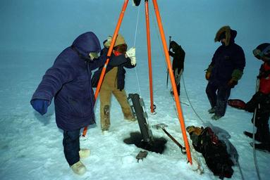 Keywords: Defense.gov News Photo 961105-N-4482V-004.jpg en Scientists embarked on board the attack submarine USS Pogy SSN 647 lower a Nisken Bottle through a hole in the Arctic ice to collect deep water samples The submarine is on a 45-day research mission to the North Pole Seven scientists and technical advisors are conducting experiments and collecting samples for studies in water mass properties geophysics ice mechanics and pollution detection in the Arctic Ocean The research voyage is the second of five planned deployments through the year 2000 961105-N-4482V-004 Navy http //www defense gov/photos/newsphoto aspx newsphotoid 496 1996-11-05 en Petty Officer 2nd Class Steven H Vanderwerff U S Navy PD-USGov-Military-Navy Import by User Slick-o-bot/Defense gov News Photos Defense gov news media to check Defense gov photos requiring renaming Defense gov news media for November 1996 |