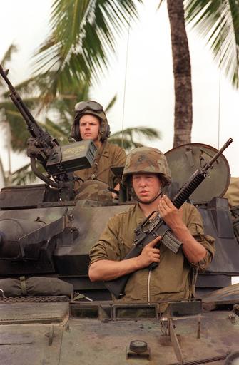 Keywords: Defense.gov News Photo 960611-N-3149V-001.jpg en Lance Cpl Ryan Roth keeps a steady hand on his M-16A2 rifle as Cpl Mike Gaffey mans an M-240G machine gun while they stand watch in their Light Armored Vehicle during a simulated Noncombatant Evacuation Operation on June 11 1996 at Kaneohe Bay Marine Corps Station Hawaii as part of exercise RIMPAC '96 More than 44 ships 200 aircraft and 30 000 soldiers sailors Marines airmen and Coast Guardsmen are involved in the exercise The purpose of RIMPAC '96 is to improve coordination and interoperability of combined and joint forces in maritime tactical and theater operations Australia Canada Chile Japan the Republic of Korea and the U S are participating in the exercise 960611-N-3149V-001 Navy http //www defense gov/photos/newsphoto aspx newsphotoid 383 1996-06-11 en Petty Officer 2nd Class Jeffrey S Viano U S Navy PD-USGov-Military-Navy RIMPAC Defense gov news media for June 1996 Import by User Slick-o-bot/Defense gov News Photos Defense gov photos requiring renaming United States Marine Corps |