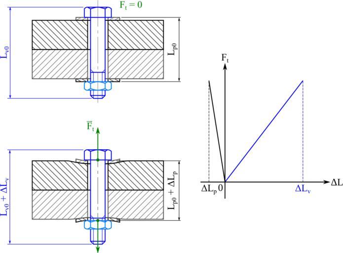 | Keywords: Deformation sous precharge assemblage boulonne.svg fr Déformation élastique d'un assemblage vissé sous l'effet de la précharge L<sub>v0</sub> longueur initiale de la vis ; ΔL<sub>v</sub> allongement de la vis sous précharge ; L<sub>p</sub> épaisseur initiale de la pièce ; ΔL<sub>p</sub> variation d'épaisseur de la pièce ; F<sub>t</sub> force de précharge en Elastic deformation of a bolt assembly under the prestrain L<sub>v0</sub> initial length of the screw; ΔL<sub>v</sub> variation of the length of the screw under the prestrain; L<sub>p</sub> initial thickness of the part; ΔL<sub>p</sub> variation of the thickness of the part; F<sub>t</sub> strength fo prestrain 2013-03-20 own Cdang similar but with a screw in a threaded bore File Deformation sous precharge assemblage visse svg inkscape cdang Drawings of screws Elastic deformation Bolts Cc-zero |