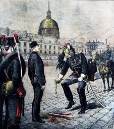 | Keywords: Degradation alfred dreyfus.jpg Assessments 1 ארכיון 10 פרשת דרייפוס en Alfred Dreyfus stripped of rank en Cashiering of Alfred Dreyfus fr Le traître Dégradation d'Alfred Dreyfus dégradation dans la Cour Morland de l'École militaire à Paris he א פרד דרייפוס מורד מדרגתו ark /12148/bpt6k7161044 f1 1895-01-13 Creator Henri Meyer PD-old-100 Paris in art Historical images of École Militaire 1895 Alfred Dreyfus 1895 Men with swords in art Uniforms Shako Cashiering 1895 events in Paris Drawings by Henri Meyer 1895 Le Petit Journal French army 1870-1914 Dreyfus affair |