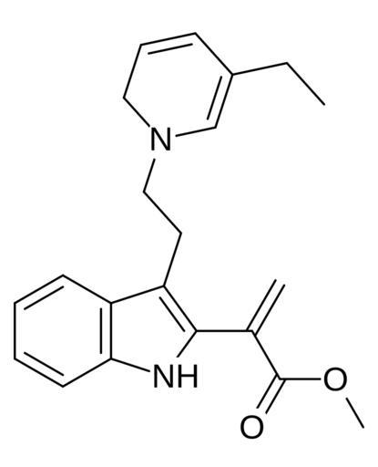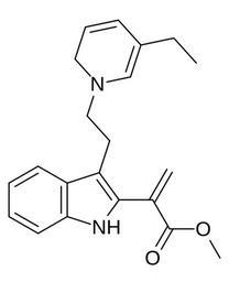 Keywords: Dehydrosecodine.svg Chemical structure of dehydrosecodine Own 17 29 14 February 2015 UTC Ed Edgar181 Indole alkaloids Methyl esters Dihydroazines