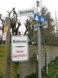 Keywords: Deichweg Schild.jpg de Schilder am Anfang des Deichweges in Schausende own Hedwig von Ebbel photo taken 2009-04-04 Schausende Road signs in Schleswig-Holstein