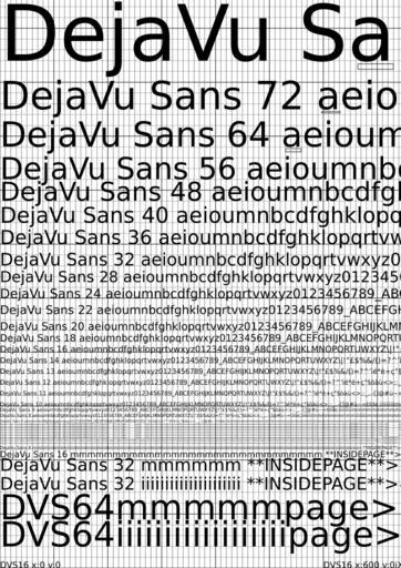 | Keywords: DejaVuSans font test 144to4.svg en DejaVu Sans font test page containing text in several font sizes over a cartesian grid Inkscape version 0 47 with the installed font DejaVu Sans was used to create this page intended to test SVG renderers File DejaVuSans font test 144to4 png is the PNG file that Inkscape saved from this SVG file The PNG can be compared against what various SVG renderers display 2010-04-04 Own 84user en The font-family specified is DejaVu Sans and no Flowed Text box elements were used 84user thumb left PNG version that Inkscape saved from this SVG ValidSVG Created with Inkscape 1 300px thumb Rendered at 300 pixels 500px thumb Rendered at 500 pixels Calibration DejaVu Sans SVG typeface specimen samples |