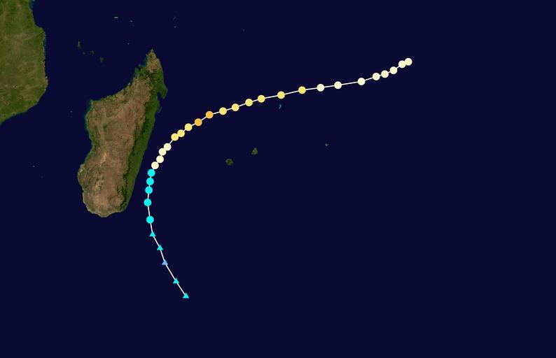 Keywords: Delia 1963 track.png Track map of Cyclone Delia of the 1962 “63 South-West Indian Ocean cyclone season The points show the location of the storm at 6-hour intervals The color represents the storm's maximum sustained wind speeds as classified in the Saffir-Simpson Hurricane Scale see below and the shape of the data points represent the nature of the storm according to the legend below User Nilfanion/Tc/T The background image is from NASA Tracking data is from http //jtwccdn appspot com/NOOC/nmfc-ph/RSS/jtwc/best_tracks/wpindex html JTWC 2013-06-12 Supportstorm Tropical cyclone tracks 1962-63 South-West Indian Ocean cyclone season track maps South-West Indian Ocean cyclone season track maps |